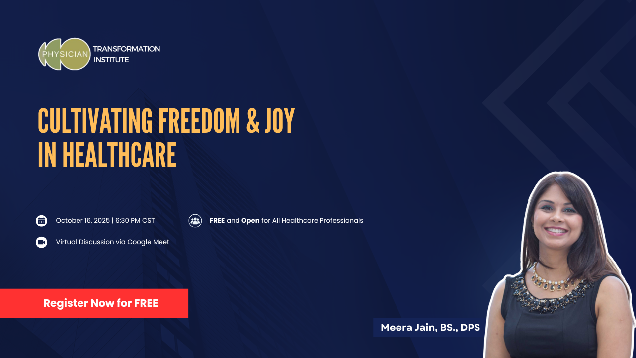Join us for Cultivating Freedom & Joy in Healthcare, an interactive talk led by Meera Jain on October 16, 2025, at 6:30 PM CST.